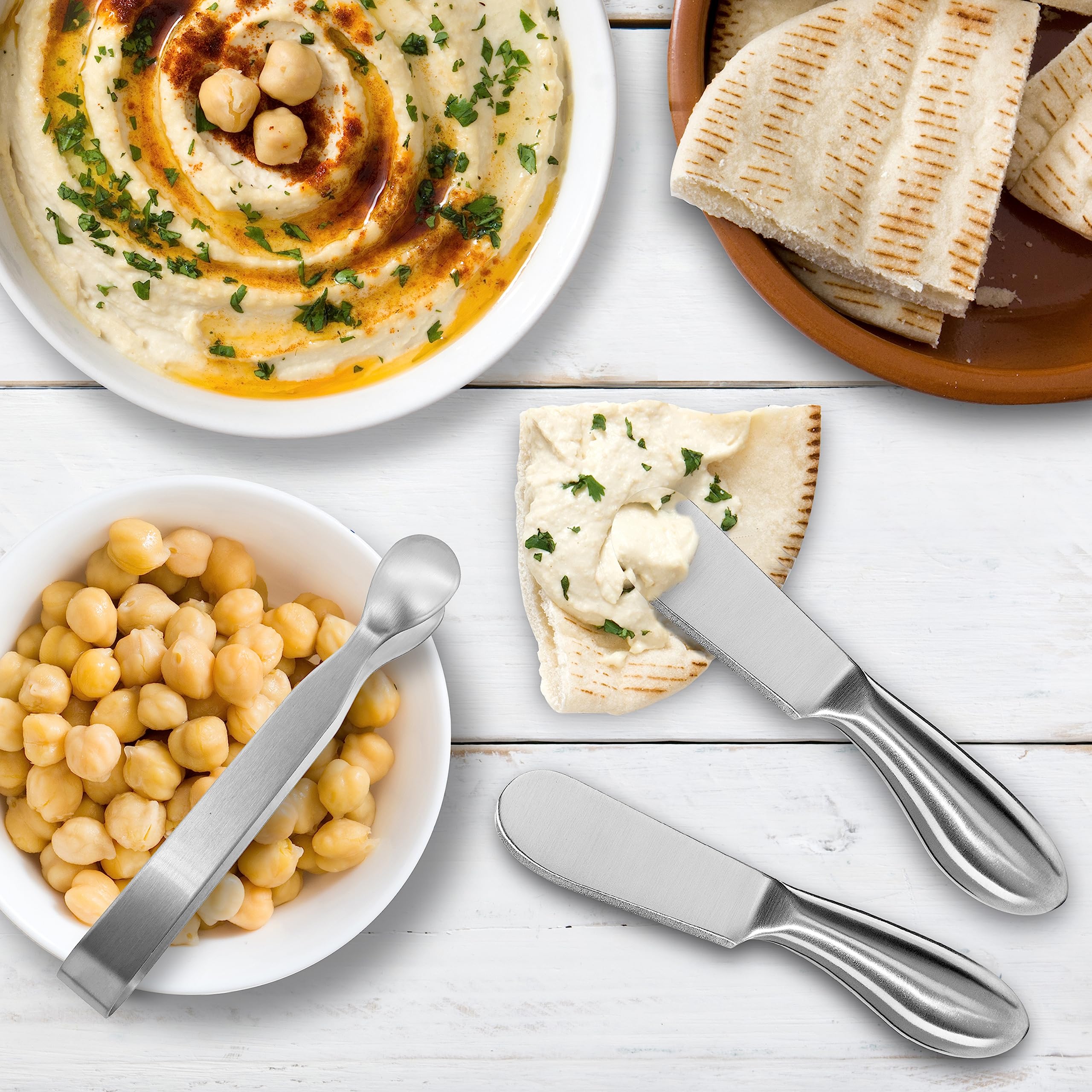 - ESSENTIAL SET: Oggi's 3pcs Charcuterie Board Accessories Set includes two knives / spreaders and a set of tongs. Makes a perfect cheese board knife set.