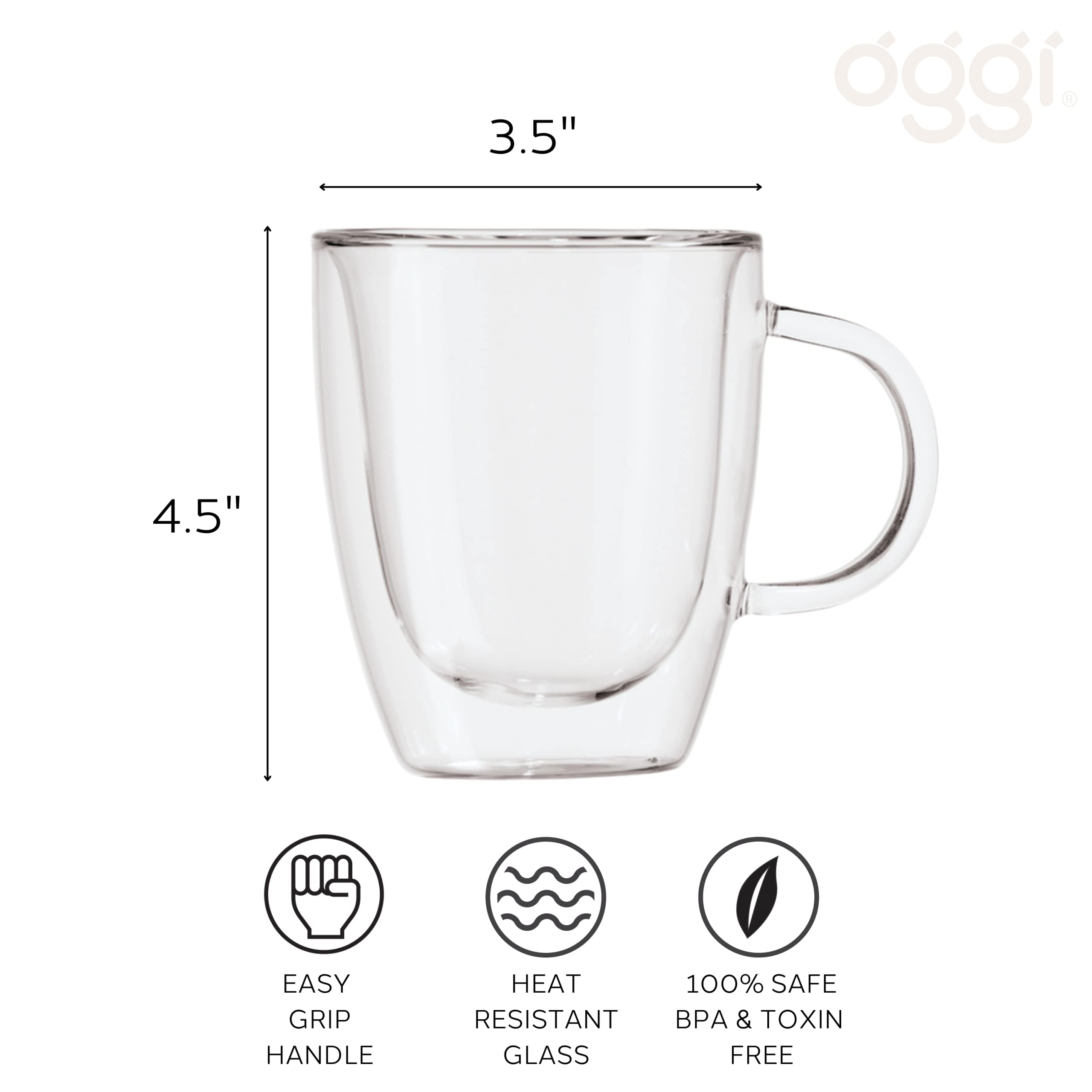 -5%Oggi Set of 2 Double Walled Insulated 12-Ounce Borosilicate Glass Bistro Mugs—