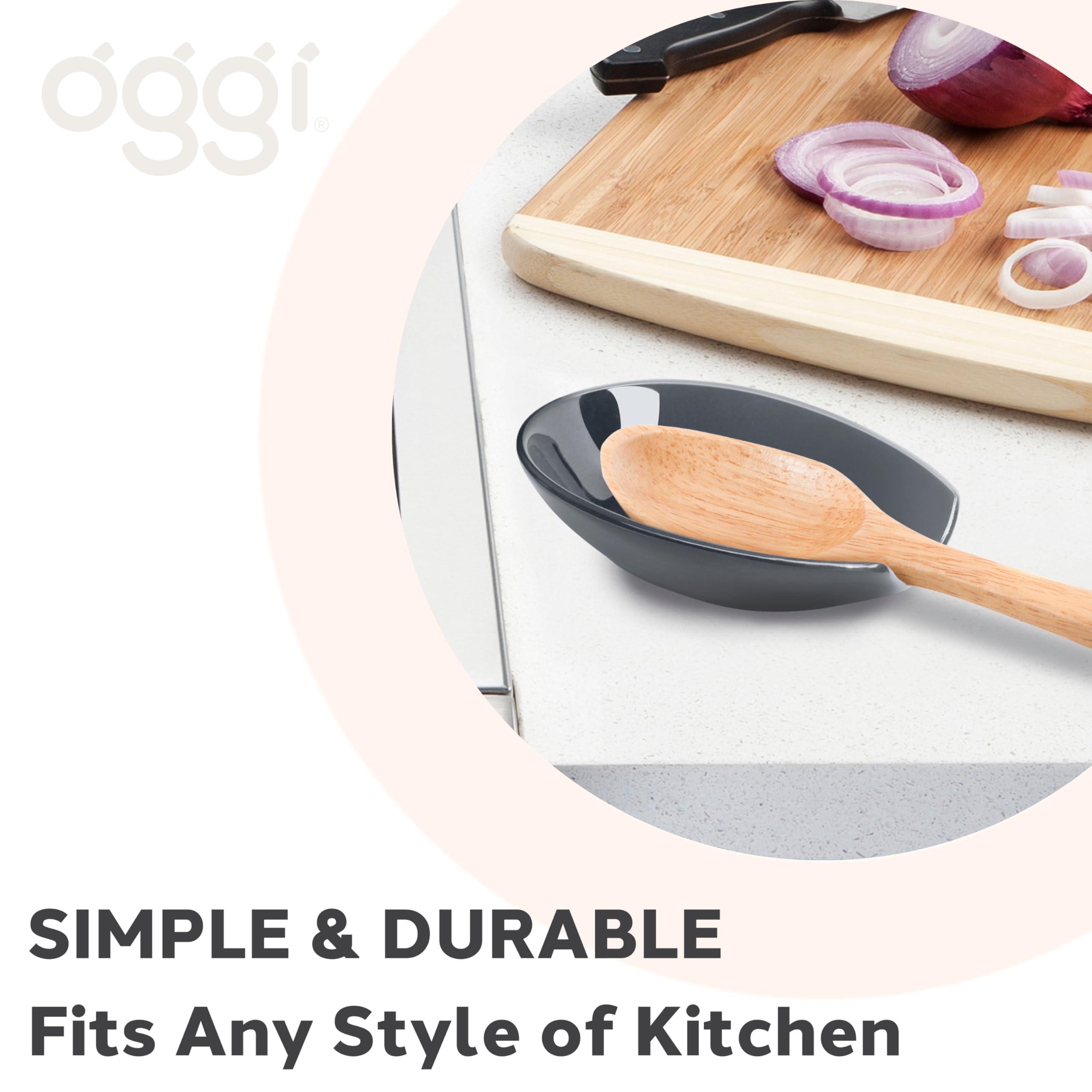 OGGI Spooner Ceramic Spoon Rest- Spoon Rest for Stove Top, Spoon Holder for Countertop, Kitchen Decor for Counter, Coffee Bar Accessories, Slate Blue